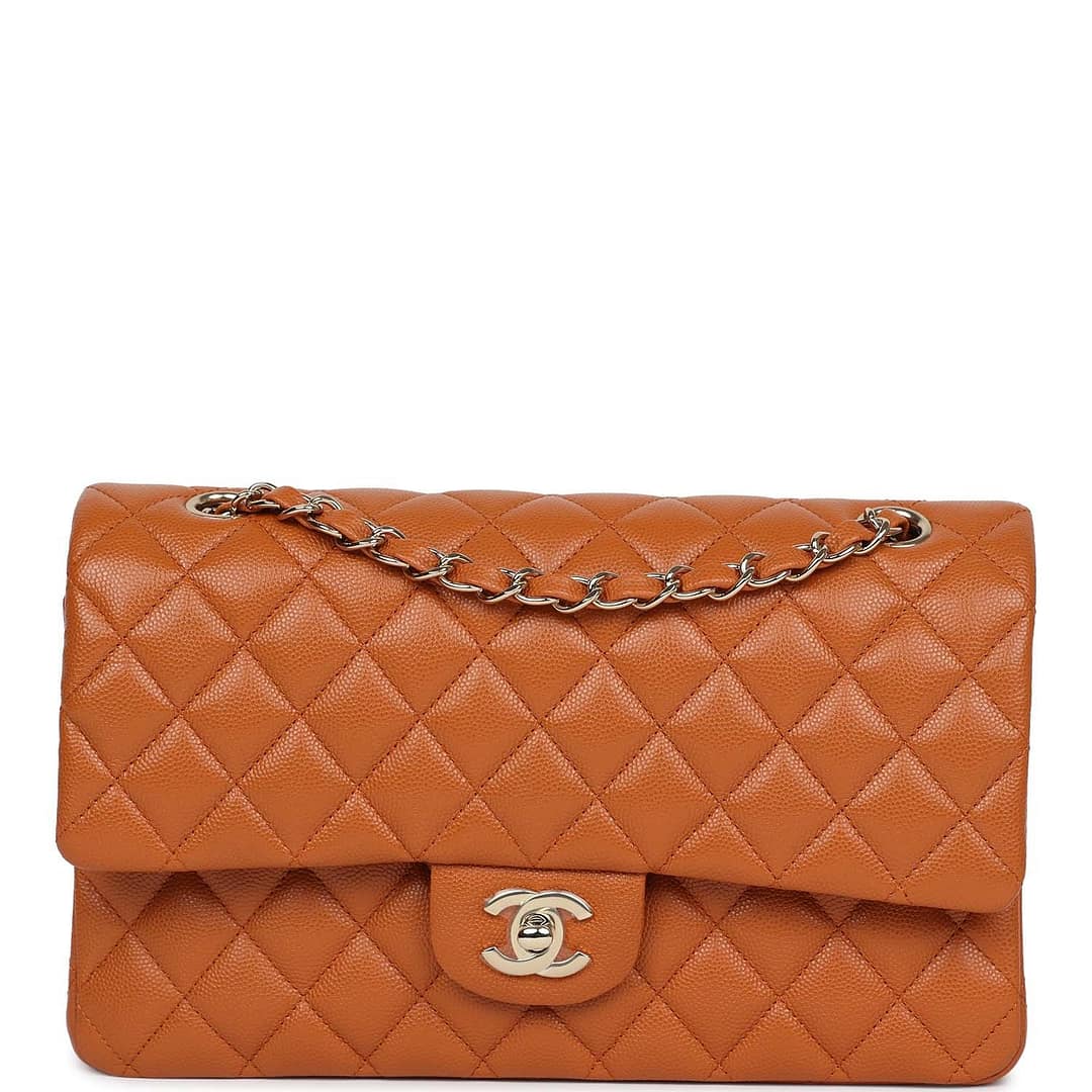 Chanel Medium Classic Double Flap Bag Caramel Shiny Caviar Light Gold Hardware