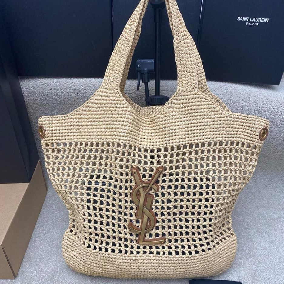 YSL ICARE SHOPPING BAG IN RAFFIA